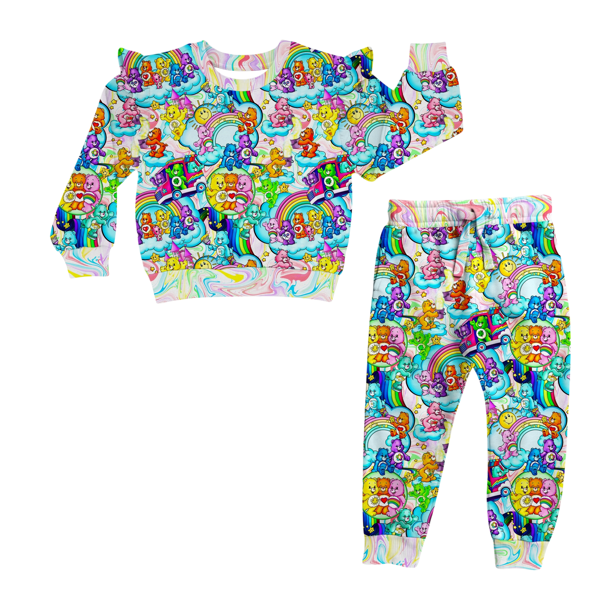 Keep your little one warm and comfy in this flutter sleeve peplum crewneck and joggers made of 260 GSM bamboo terry blend. This crewneck and jogger set combine functionality and style, making them a staple piece for your little one's wardrobe.